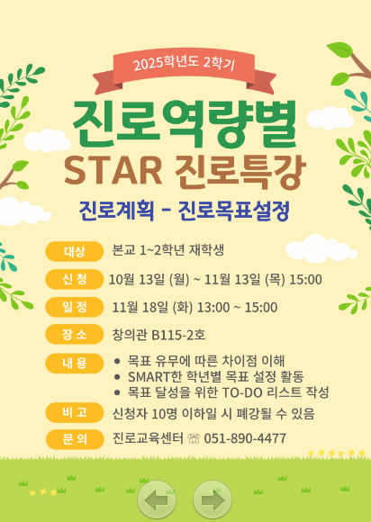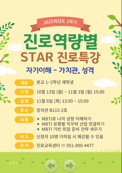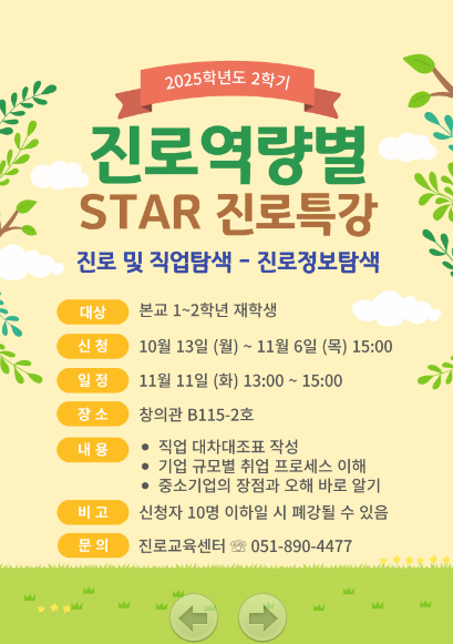 [재학생맞춤형고용서비스사업/국고-빌드업] 2025학년도 2학기 진로역량별 STAR 진로특강 운영 안내
